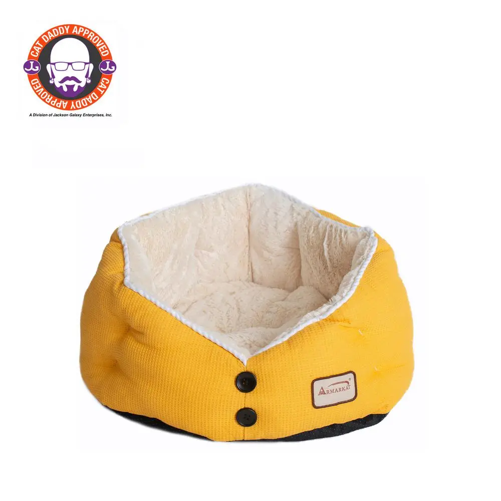 Cats or very small dogs can slumber in soft plush with Armarkat Model C75HMB/MH. The bolstered cat bed features a gold waffle cover, black accent buttons, and an ultra soft plush interior. It almost looks like your pet is nesting inside of your favorite shirt. The cushion of the bed can be easily washed. Overall Dimensions: 22″(L) x 18″(W) x 14″(H) Pad Thickness: 3.2″ Gross Weight: 3.9 lbs. Net Weight: 3.3 lbs.
