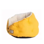 This bolstered cat bed features a gold waffle texture poly blend cover, black accent buttons, and an ultra soft plush interior. It almost looks like your pet is nesting inside of your favorite shirt. Overall Dimensions: 22″(L) x 18″(W) x 14″(H)Pad 22-inch plush bed is made with 100% polyfill. Comes with gold waffle exterior and ultra soft, plush interior. Designed to look like a shirt with a cozy interior that provides comfort and security. Removable and machine washable cushion for easy maintenance. Skid-free and water resistant base. Six months manufacturers warranty against defects.