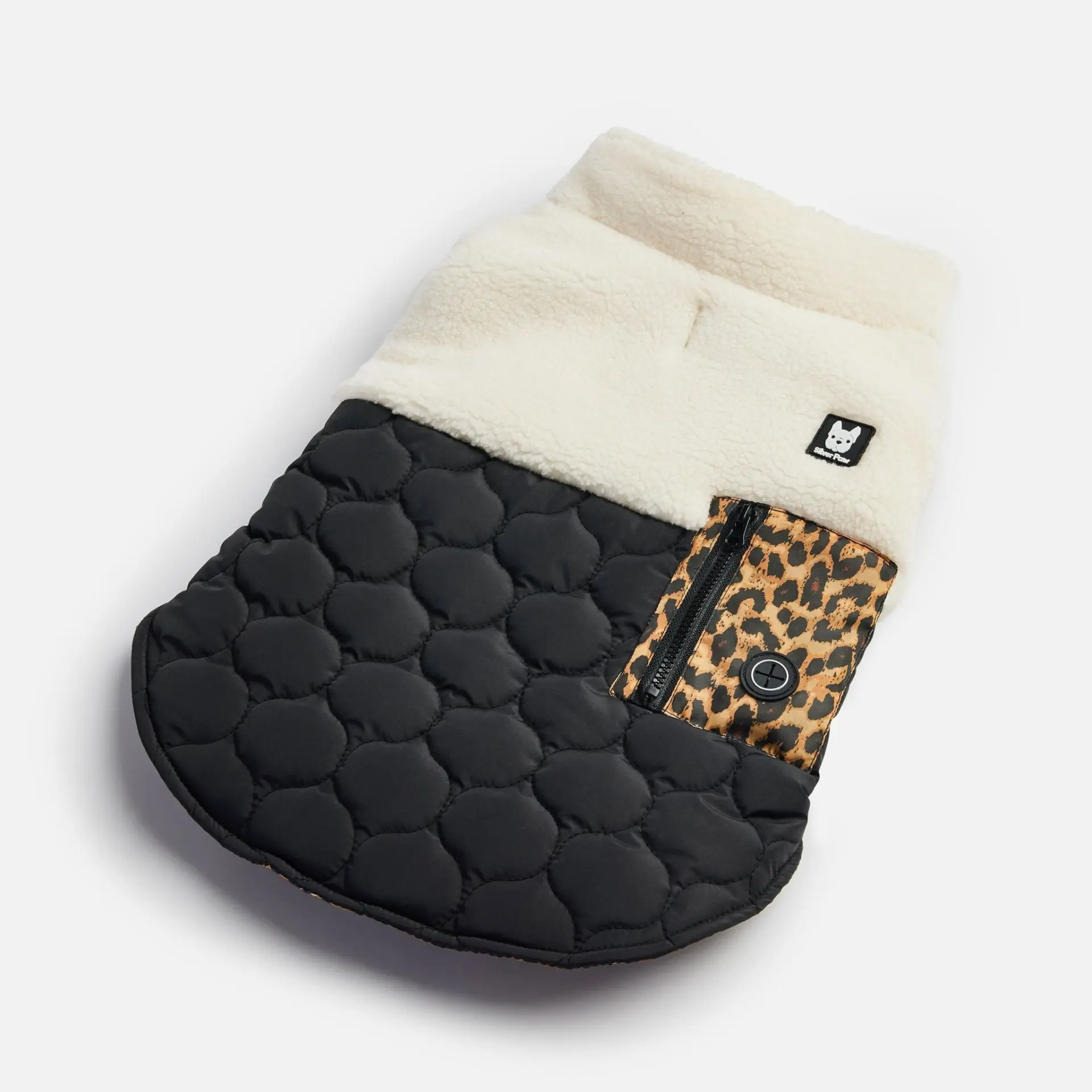 This fashion forward dog jacket is one of a kind! Make a statement in our Loki Jacket – a quilted jacket with sherpa yoke and collar, and contrast leopard pocket. Doesnt get more stylish than this!